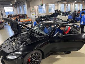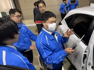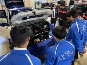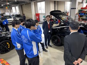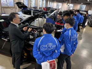 教科書に載っていない最新技術や、グループで取り組んでいる独自の整備技術などを細かく解説いただき、生徒たちは興味津々の様子でした。