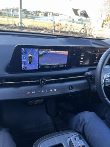 画像にあるモニター内に映っているPのマーク(見づらくてごめんなさい)は車両の持っているセンサーで白線を基に駐車スペースがあるかどうかを認識しています。スペースがあると認識するとPマークが出て、そこをタップすると自動駐車を開始します。