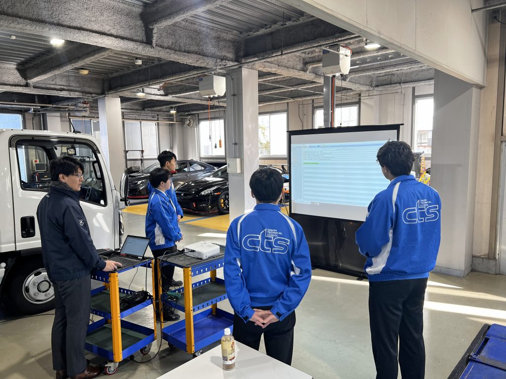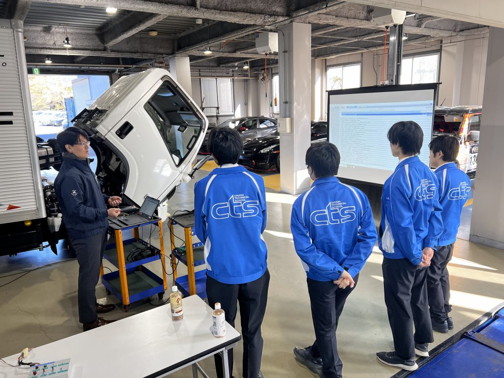 排気ガス後処理装置やドライバー安全サポートシステム等、教科書に載っている内容や載っていない内容のお話を聞くことが出来ました。