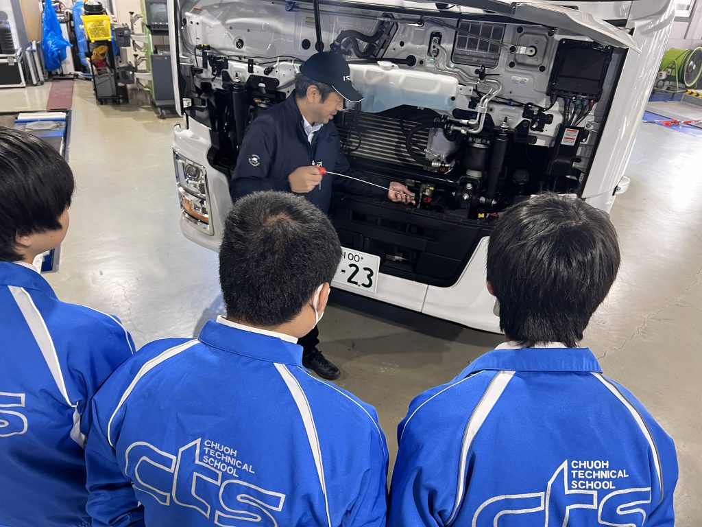 ここではトラックの各装置の作動や、試乗体験、故障診断などを見学、体験する実習でした。