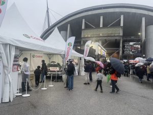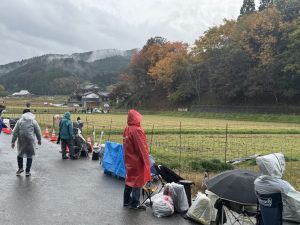 名古屋到着後、バスにて三河湖SS会場へ向かいます。しかし、生憎の雨☔いや大雨
